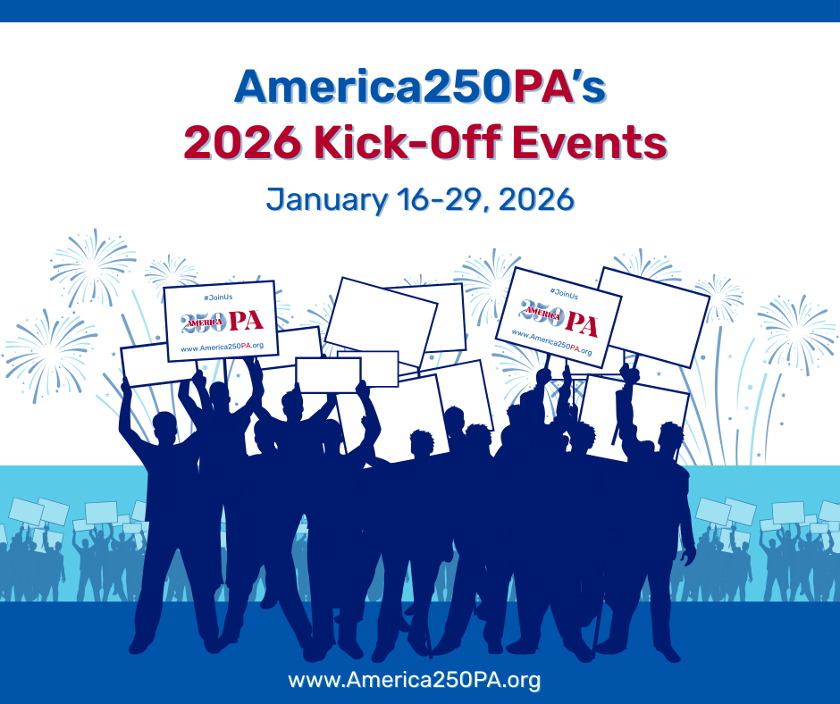 2026 IS HERE! Beginning January 16 in Philadelphia, America250PA will kick off the Semiquincentennial year with a two-week tour of all 67 counties—celebrating at courthouses and historic sites across Pennsylvania. Will you be joining us in YOUR county? See more details and RSVP by clicking the button below! Direct Link: https://form.jotform.com/253344756467164 ________________________________________ Questions? Contact info@america250pa.org ________________________________________ Be sure to follow us on social media to see our travels across the Commonwealth! Facebook | LinkedIn | Instagram | X (Twitter) |